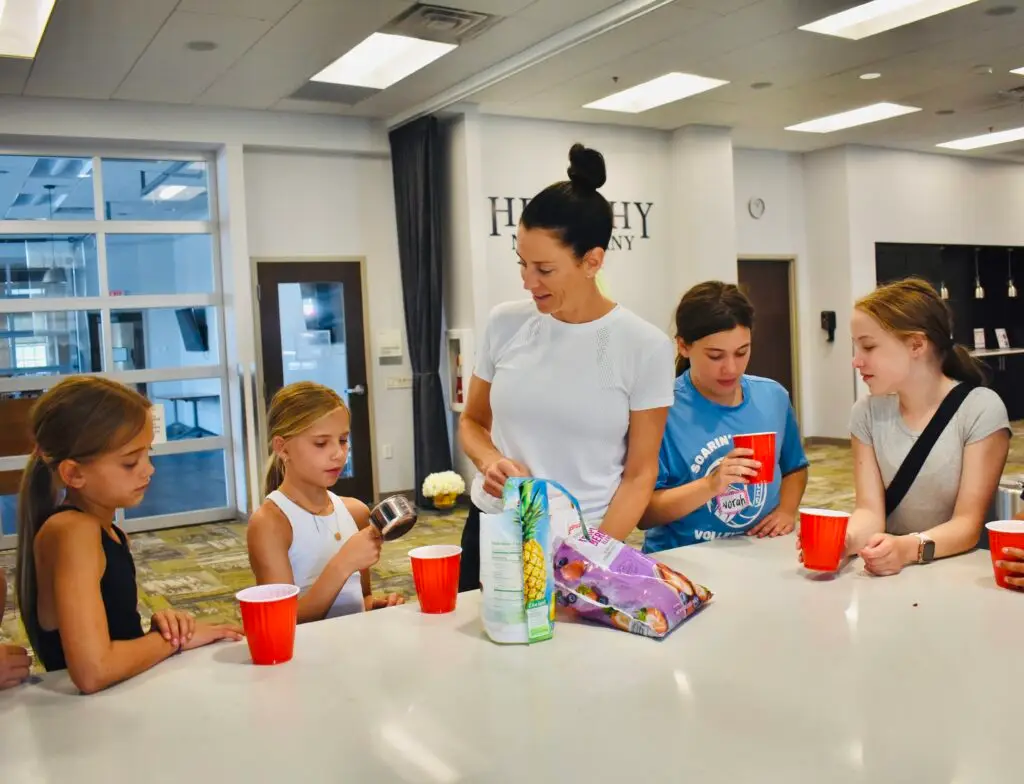 • Fitness Component: After preparing their breakfast, participants engage in a 20-minute yoga flow and light stretching to start the day feeling energized and connected to their bodies. The class teaches them how to stretch and relax in the morning to set a positive tone for the day.